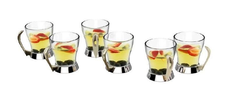 Szklanki w koszyczku metalowym ze stali nierdzewnej 18/10