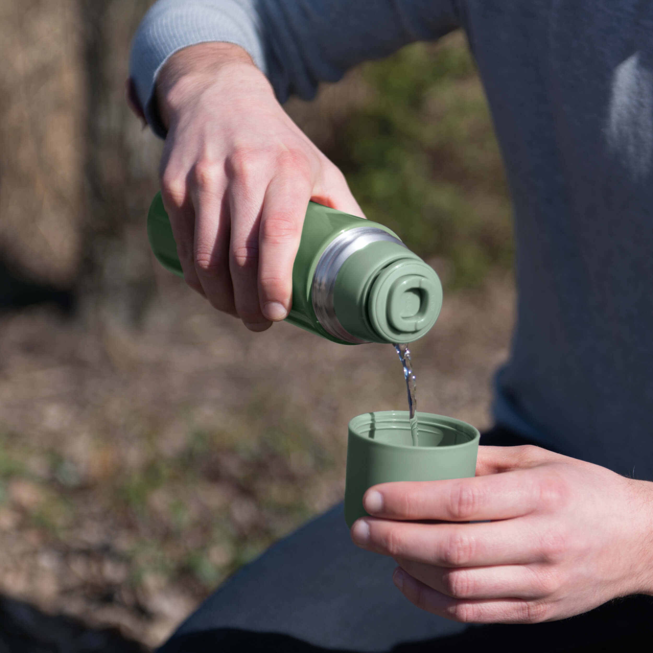 Wytrzymały, stylowy i wygodny termos podróżny jest idealny, aby zabrać ze sobą swój ulubiony gorący lub zimny napój, gdziekolwiek jesteś. Dwuścienna konstrukcja utrzymuje ciepło lub zimno napoju przez kilka godzin, a wytrzymała stal nierdzewna pozostaje chłodna w dotyku. Kiedy tylko poczujesz pragnienie, po prostu skorzystaj z łatwego systemu "push-to-drink" i bezpiecznie nalej sobie napój do nakrętki, która pełni funkcję poręcznego kubka.