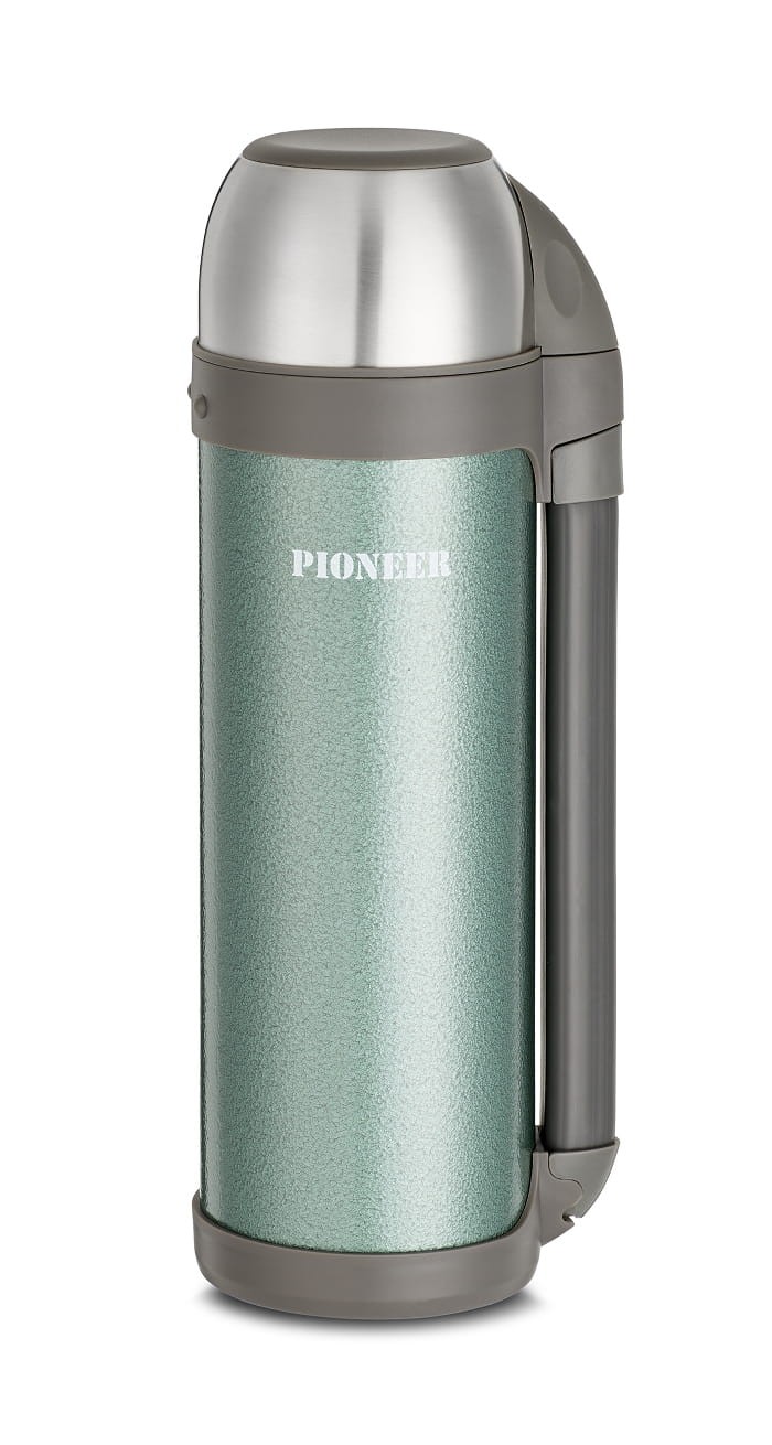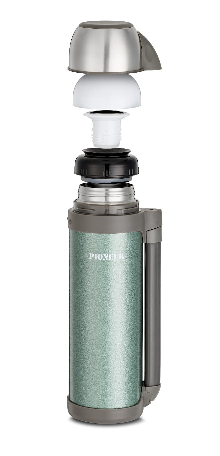Termos Pioneer Outdoor sprawdzi się świetnie podczas dłuższych wypraw i wycieczek. Dzięki szerokiemu wlewowi można umieścić w nim nie tylko napoje, ale także zupy. Termos zachowuje wysoką (na poziomie 40 st. C) temperaturę naparów i dań nawet do 18 godzin. Zaopatrzony w solidny korek, dwuścienną konstrukcję oraz pokrywkę i wkładkę w pokrywce, które służyć mogą jako kubki lub miseczki. Dzięki temu z zawartości termosu jednocześnie korzystać mogą nawet dwie osoby. Jeżeli w naczyniu znajduje się płyn, to nie musimy go każdorazowo odkręcać, wystarczy jednym kliknięciem otworzyć zamontowany w korku wąski wlew. Termos wyposażony został w wygodny uchwyt, który po użyciu składamy na płasko oraz specjalny pasek, aby przewiesić termos przez ramię.
