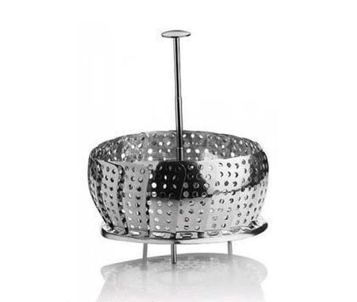 Wykonany z wysokiej jakości stali szlachetnej 18/10. Wyposażony w regulację średnicy. Pasuje do garnków o średnicy 18-27 cm. Posiada trzy, składane nóżki ułatwiające posadowienie w garnku, tworząc przy okazji przestrzeń między wkładem a dnem garnka o wysokości 2 cm. Wysokość 85 mm. Posiada teleskopową rączkę, która ułatwia wyjmowanie wkładu. Można myć w zmywarce. Łatwy do mycia i utrzymania w czystości. Wykończony na wysoki połysk. Perforowany na całej powierzchni. zapakowany w firmowe, eleganckie prezentowe pudełko. Dobry i niedrogi sposób na ciekawy prezent