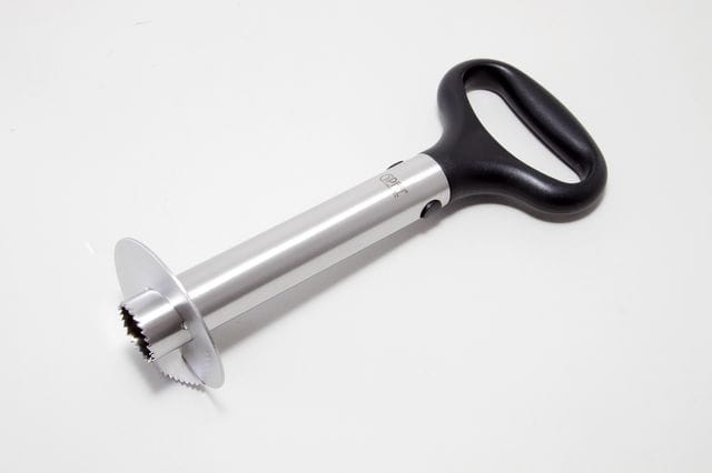 Wykrawacz do wycinania środka z ananasa jest bardzo prosty w obsłudze - wystarczy wbić wykrawacz w górę ananasa, a następnie wkręcić pokrętło do samego końca. Jest to szybki i wygodniejszy sposób niż obieranie ananasa. Produkt przydatny w każdej kuchni.