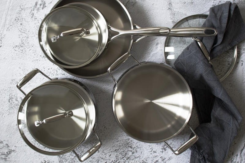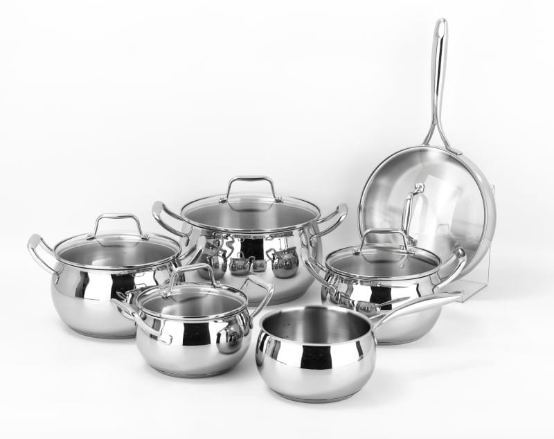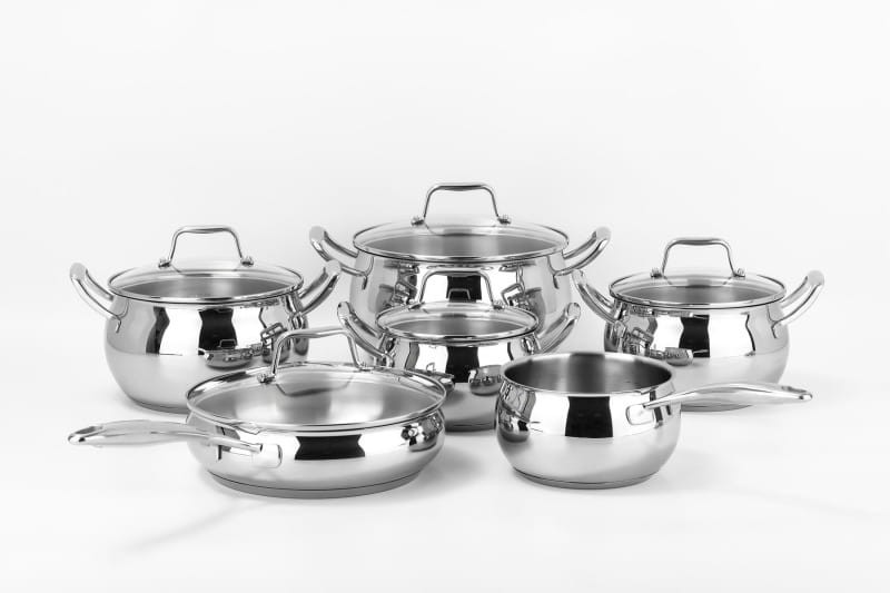 Przed umyciem naczynia muszą ostygnąć. Po każdym użyciu zaleca się mycie naczyń miękką gąbką lub ściereczką z dowolnym detergentem. Po umyciu należy opłukać ciepłą wodą i wytrzeć do sucha. Większe zabrudzenia można usunąć za pomocą środków w proszku do czyszczenia naczyń ze stali nierdzewnej. Aby usunąć resztki przypalonego jedzenia, do naczynia należy wlać wodę z detergentem lub bez podgrzać je i usunąć zabrudzenia drewnianą łopatką albo twardą gąbką. Nie zaleca się używania metalowych szczotek, noży czy skrobaków. W naczyniach zastosowano jednorodną stal nierdzewną, więc zarysowania wynikające z niestarannej konserwacji w żaden sposób nie wpływają na jakość potraw. Przywieranie potraw do wewnętrznej powierzchni naczynia jest wynikiem nie prawidłowo wybranego trybu grzania: - patelnia została niedostatecznie rozgrzana lub zbyt słabo nagrzewana podczas smażenia potraw. Należy unikać przegrzewania naczyń, ponieważ może to skutkować złotym lub jasnobrązowym przebarwieniem powierzchni stali nierdzewnej i tęczowymi plamami. Nie jest to wada naczynia i w żaden sposób nie wpływa na wytrzymałość naczynia ani na właściwości gotowanej żywności.