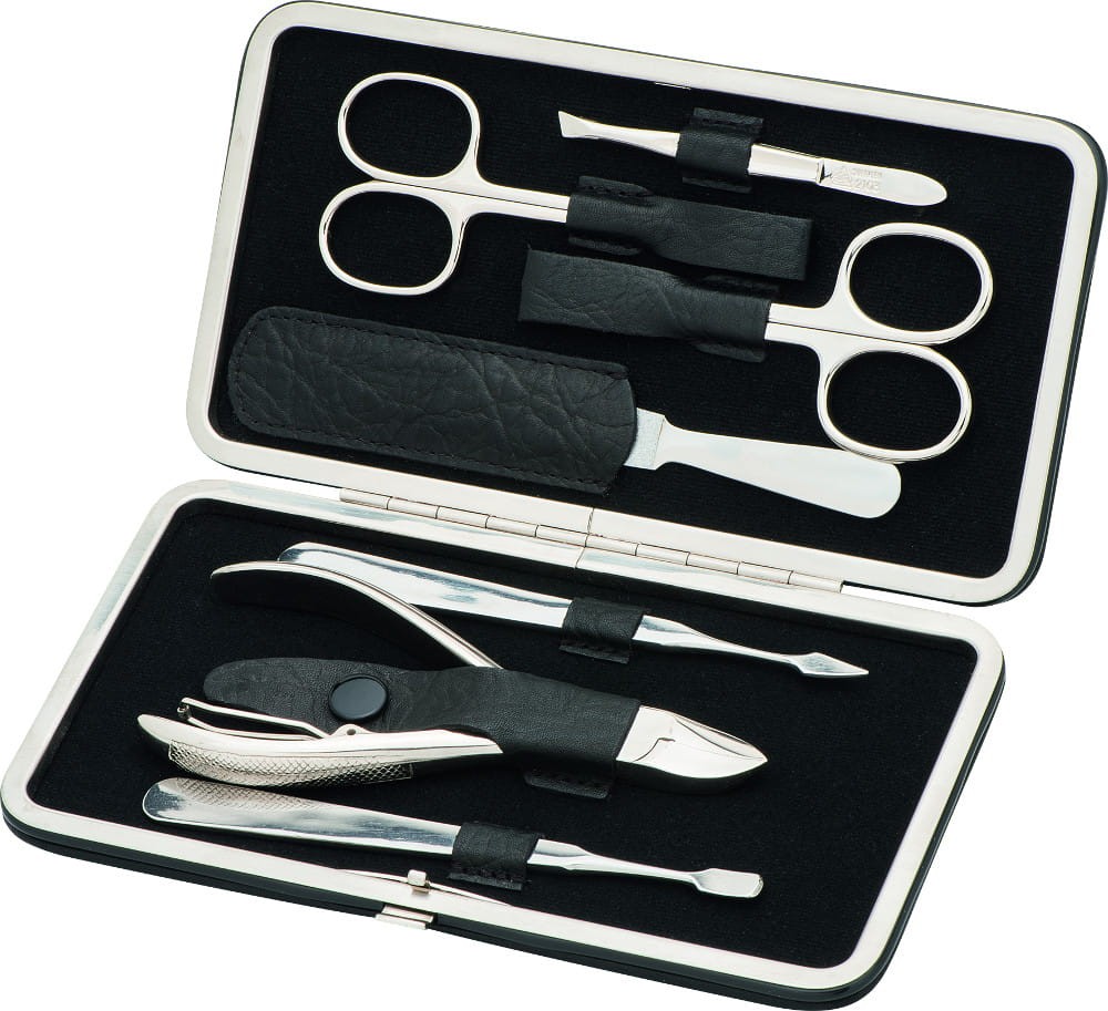 Zestaw do manicure 7 el. ze stali w sztywnym etui, czarna skóra Erbe ER9088