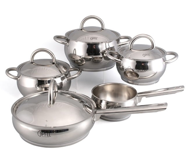 Wykonane z wysokogatunkowej stali nierdzewnej, polerowanej na wysoki połysk: 18/10 AISI 304-2B, w środku matowe, chirurgiczna stal szlachetna. Posiadają cieplnie izolowane uchwyty pokrywki, uchwyty boczne usztywnione i wzmacniane, zgrzewane, pokrywki metalowe, eleganckie pudełko, korpus garnka lekko wypukły. Zestaw 9 elementowy. Nadają się do na każdy rodzaj źródła ciepła.