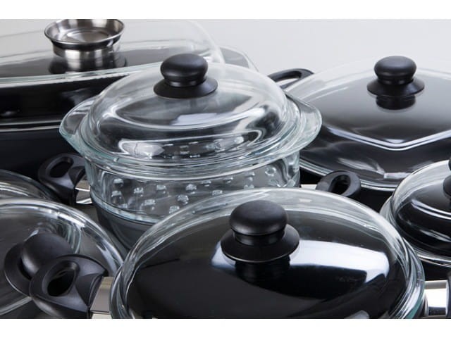 Pokrywy szklane z uchwytami z tworzywa.