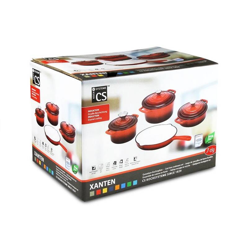 Naczynia żeliwne Xanten niemieckiej marki CS KOCHSYSTEME powstają w procesie DISA z kutego żeliwa, pozbawionego PFOA i PTFE. Pokryte one zostały gładką powłoką emaliowaną o nazwie PronamelPlus©, która nie tylko zapewnia im atrakcyjny wygląd, ale przede wszystkim chroni naczynie przed rdzewieniem oraz przywieraniem gotowanych w nim potraw. Piękna, żywa kolorystyka na zewnątrz i kremowy środek oraz ozdobny stalowy uchwyt dodają elegancji naczyniu, pozwalając serwować w nim gotowe potrawy prosto na stół.